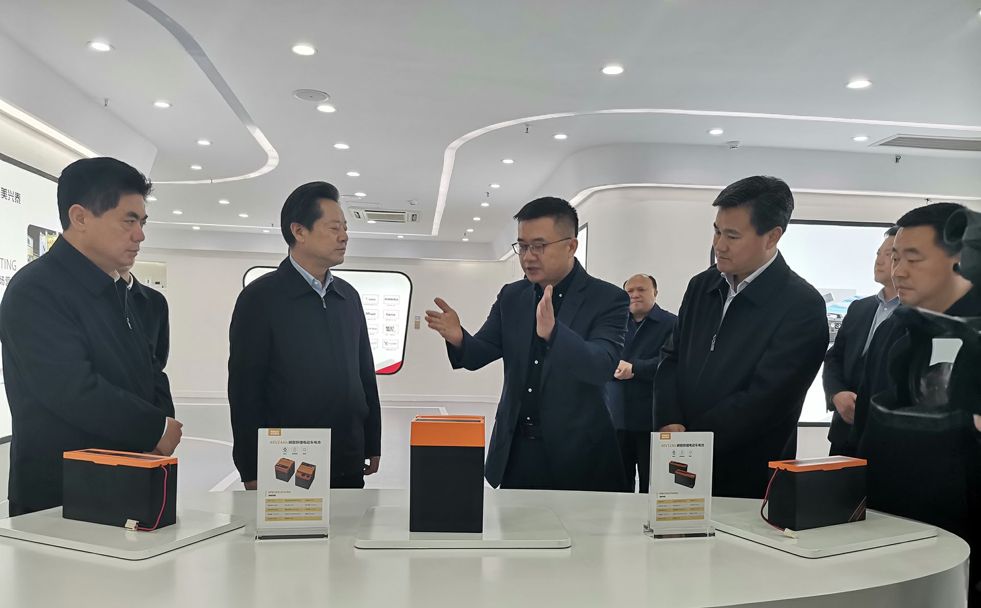 在董事长杨昌军的带领下,州委书记虢正贵一行参观了首页|凯发(中国区)官方网站产品展示厅以及泰和美新能源电芯自动化生产线,详细了解了泰和美电动车电池产品市场规模及市场前景。